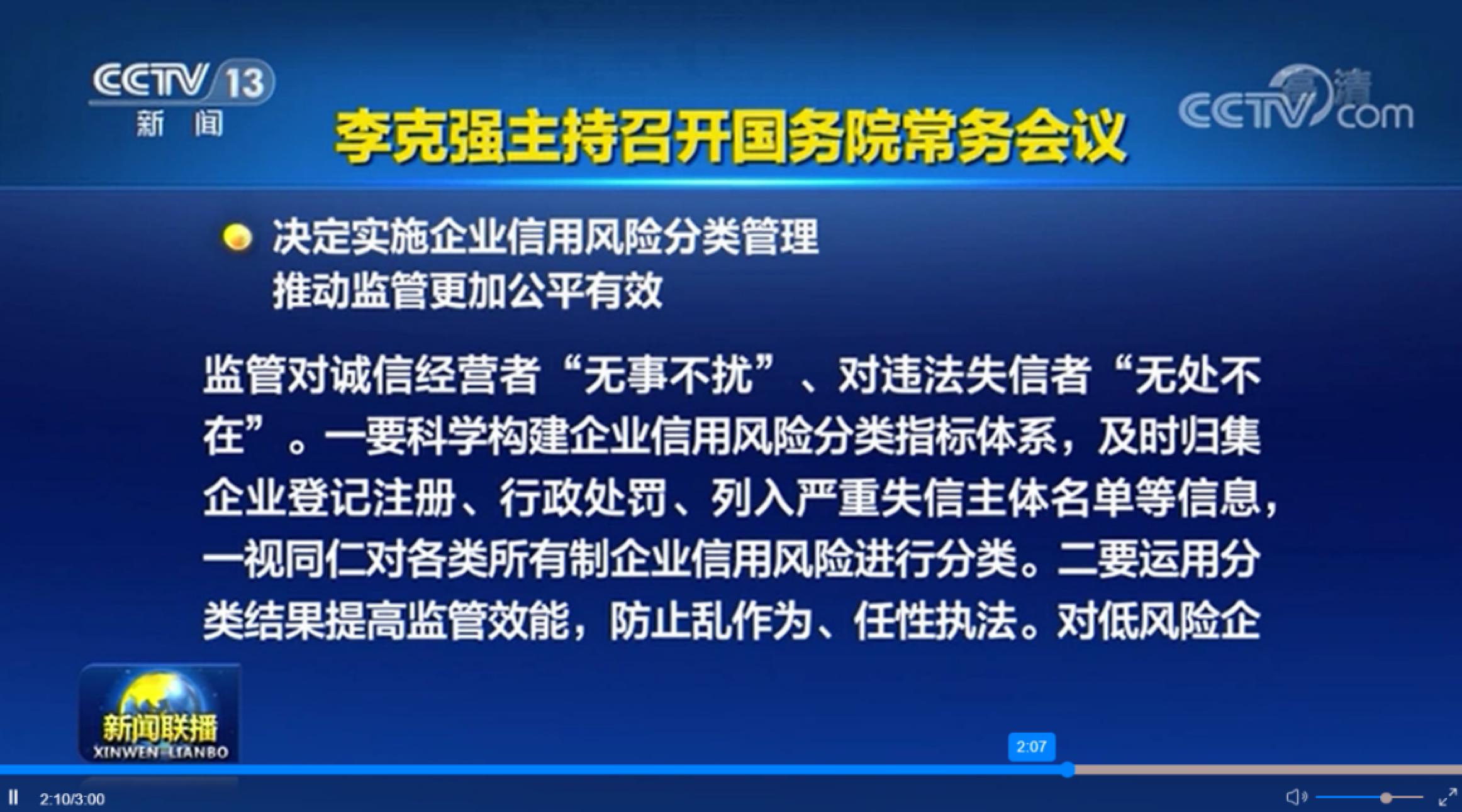 會(huì)議指出,信用是市場(chǎng)經(jīng)濟(jì)的基礎(chǔ)。為營(yíng)造誠(chéng)實(shí)守信、公平競(jìng)爭(zhēng)市場(chǎng)環(huán)境,要依法依規(guī)推進(jìn)企業(yè)信用風(fēng)險(xiǎn)分類管理,相應(yīng)采取“雙隨機(jī)、一公開(kāi)”等科學(xué)精準(zhǔn)的監(jiān)管措施,使監(jiān)管對(duì)誠(chéng)信經(jīng)營(yíng)者“無(wú)事不擾”、對(duì)違法失信者“無(wú)處不在”。