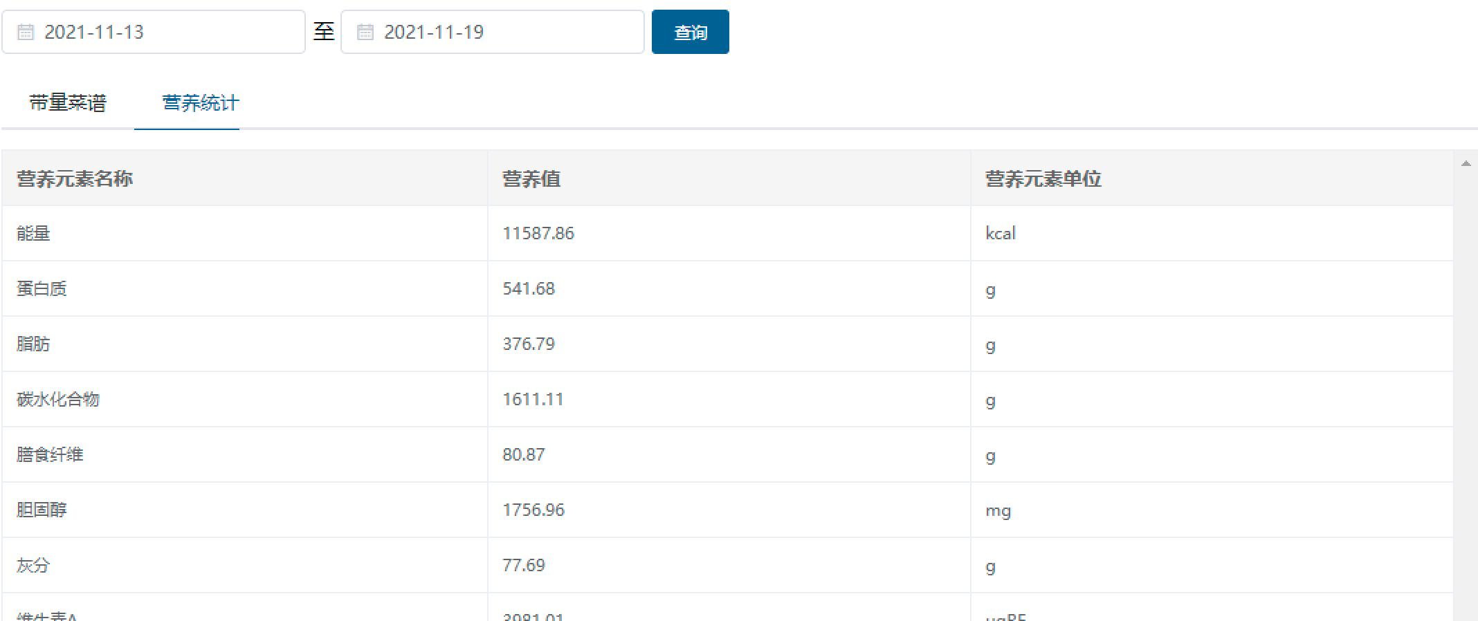 通過(guò)系統(tǒng)模型,自動(dòng)計(jì)算出每日菜品所含的十幾種營(yíng)養(yǎng)元素含量,主要包括礦物質(zhì)和維生素等。微量營(yíng)養(yǎng)素雖然需要量少,但在幼兒園、中小學(xué)生成長(zhǎng)過(guò)程中發(fā)揮著重要的作用,缺乏或過(guò)量都會(huì)引起疾病,所以膳食搭配中易不可忽視。