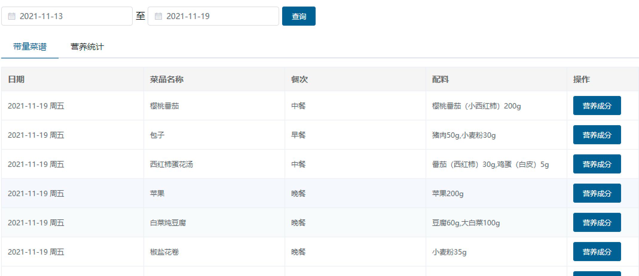 及時(shí)預(yù)警菜品營(yíng)養(yǎng)元素和食材類(lèi)別搭配不均的問(wèn)腿,方便營(yíng)養(yǎng)專(zhuān)員及時(shí)加以應(yīng)對(duì)。